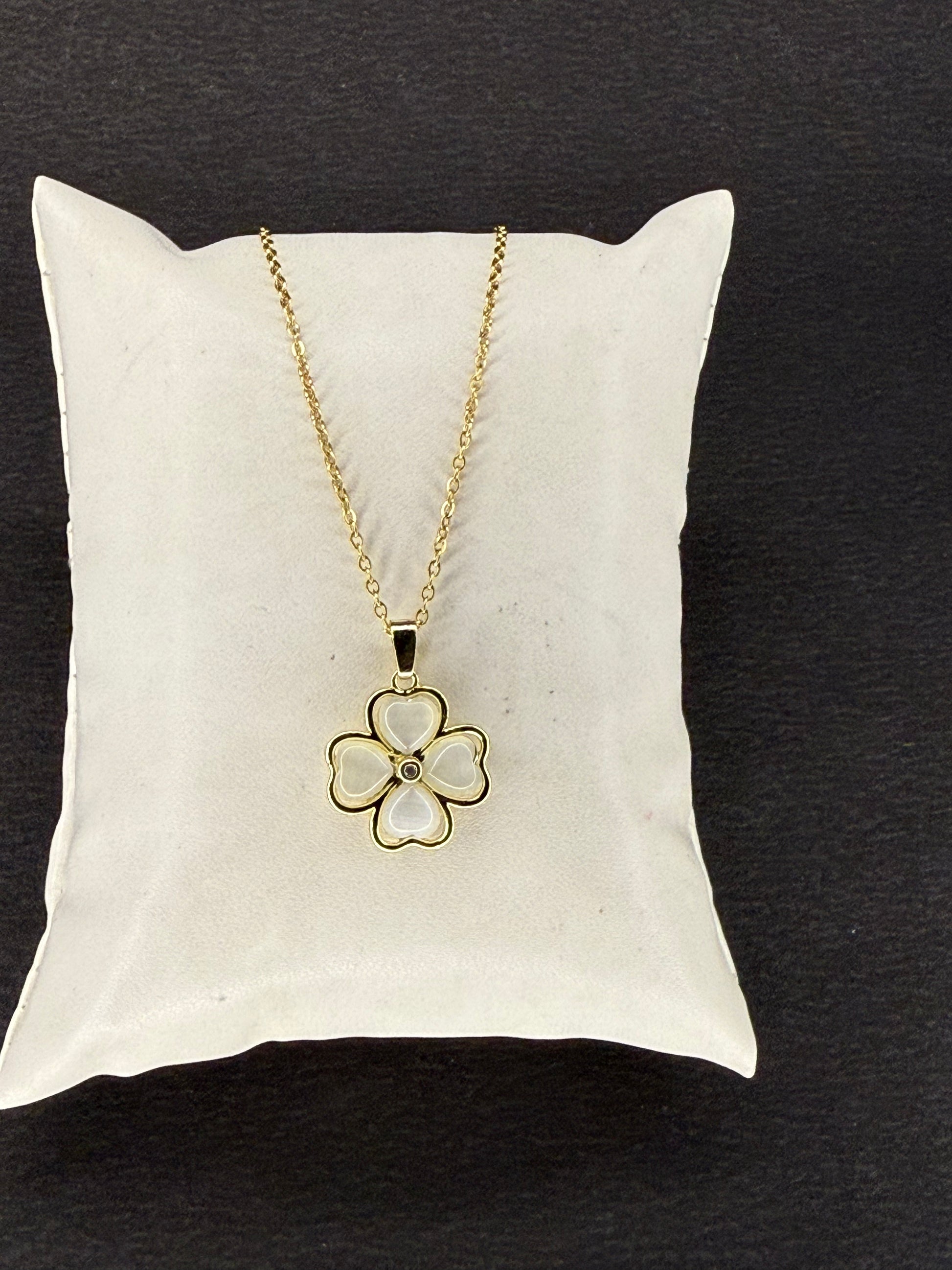 Foul white Leaf Clover Pendant with Chain KM0020