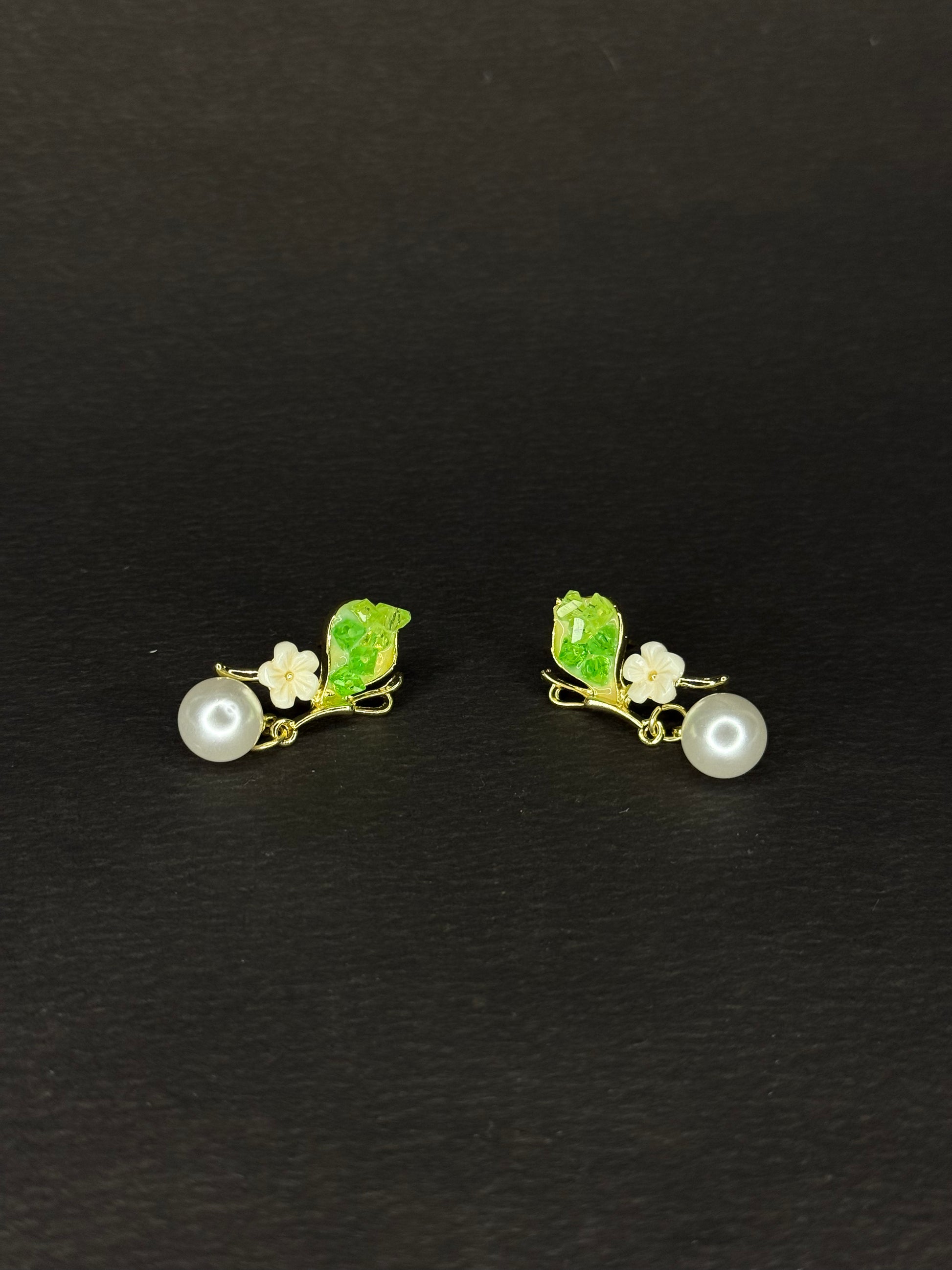 Pearl Blossom Drop Earring (green) KB0012